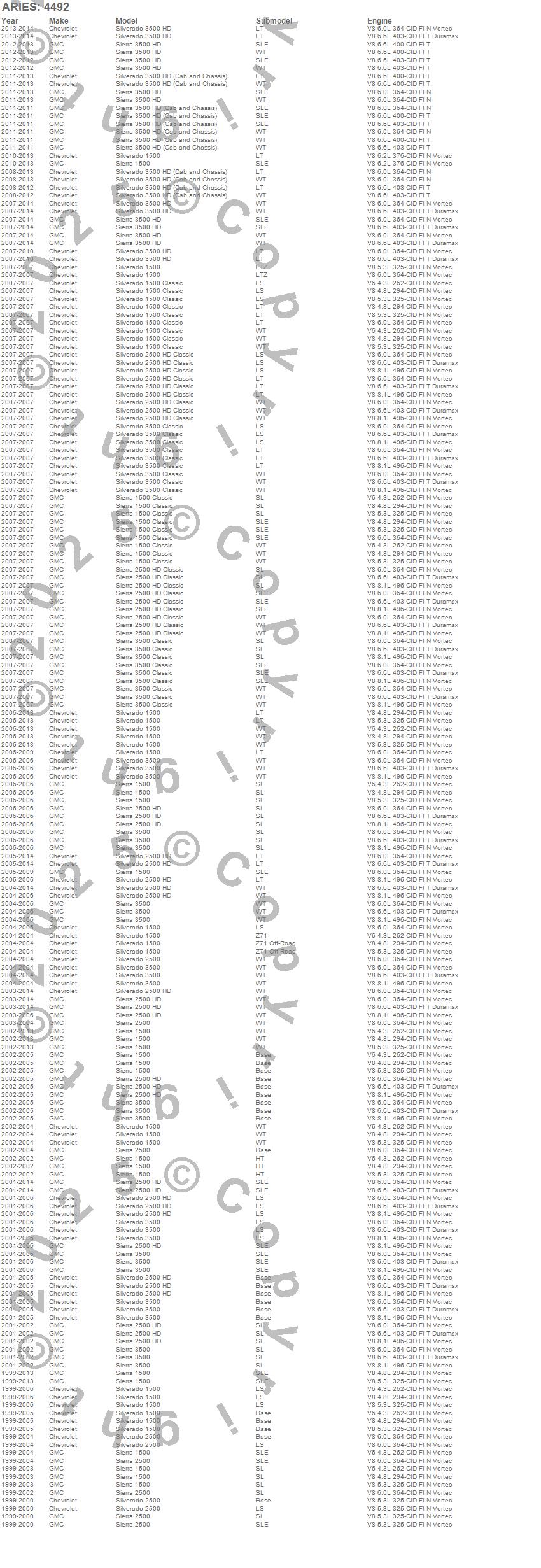 Below is an abbreviated list of applications for the The Standard 6 in. Oval Nerf Bar Mounting Brackets.Sierra 1500, Sierra 1500 Classic, Sierra 2500, Sierra 2500 HD, Sierra 2500 HD Classic, Sierra 3500, Sierra 3500 Classic, Sierra 3500 HD, Silverado 1500, Silverado 1500 Classic, Silverado 2500, Silverado 2500 HD, Silverado 2500 HD Classic, Silverado 3500, Silverado 3500 Classic, Silverado 3500 HD, Chevrolet, GMC, 2014, 2013