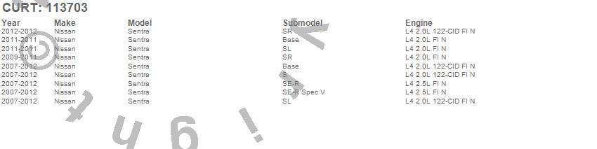 Below is an abbreviated list of applications for the Class I 1.25 in. Receiver Hitch.Sentra, Nissan, 2012, 2011, 2010, 2009, 2008, 2007