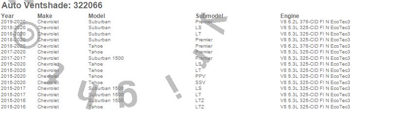 Below is an abbreviated list of applications for the Aeroskin Smoke Hood Protector.Suburban, Suburban 1500, Tahoe, Chevrolet, 2020, 2019, 2018, 2017, 2016, 2015