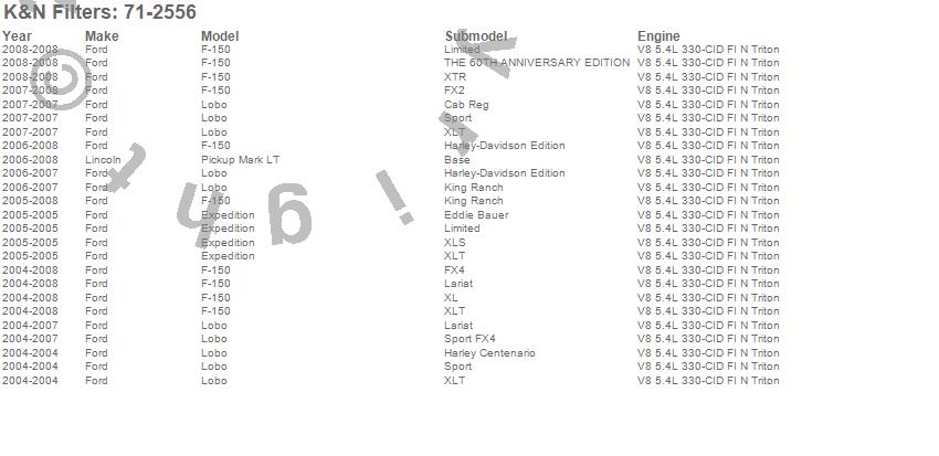 Below is an abbreviated list of applications for the Blackhawk Air Induction Kit.Expedition, F-150, Mark LT, Ford, Lincoln, 2008, 2007, 2006, 2005, 2004