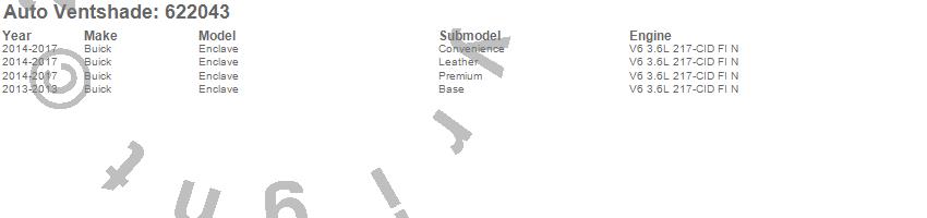 Below is an abbreviated list of applications for the Aeroskin Chrome Hood Protector.Enclave, Buick, 2017, 2016, 2015, 2014, 2013