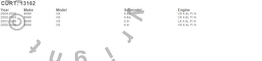 Below is an abbreviated list of applications for the Class III 2 in. Receiver Hitch.X5, BMW, 2006, 2005, 2004, 2003, 2002, 2001, 2000
