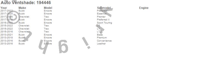Below is an abbreviated list of applications for the Ventvisor In-Channel Deflector 4 pc..Encore, Trax, Buick, Chevrolet, 2022, 2021, 2020, 2019, 2018, 2017, 2016, 2015, 2014, 2013