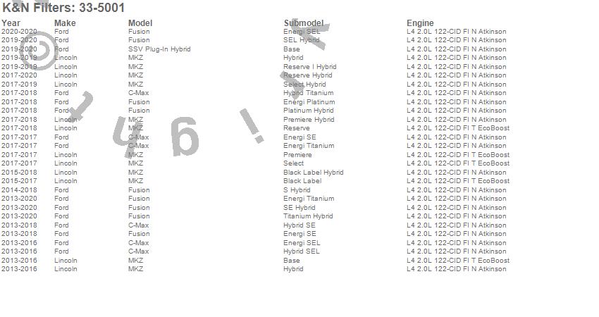 Below is an abbreviated list of applications for the Air Filter.C-Max, Fusion, MKZ, Ford, Lincoln, 2019, 2018, 2017, 2016, 2015, 2014, 2013
