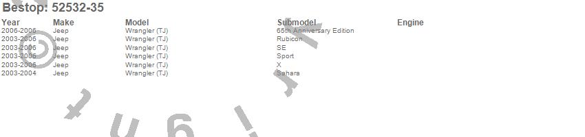 Below is an abbreviated list of applications for the Header Extended Safari Style Bikini Top.Wrangler (TJ), Jeep, 2006, 2005, 2004, 2003
