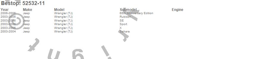 Brand: BestopPart Number: 52532-11Brief Soft Top Type: Mesh [Available While Supplies Last] - Color-Matched - No Drill Header - Requires Installation Of PN[51238]UPC: 077848020965