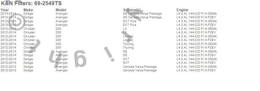 Below is an abbreviated list of applications for the Typhoon Complete Cold Air Induction Kit.200, Avenger, Chrysler, Dodge, 2014, 2013, 2012