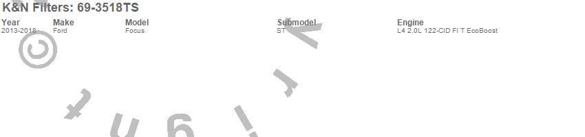 Brand: K&N FiltersPart Number: 69-3518TSAir Intake Kit Type: Incl. Red Air Filter/Heat Shield/Silver Tubing - Estimated Horsepower Gain 7.38 HP At 5130 RPMUPC: 024844344144