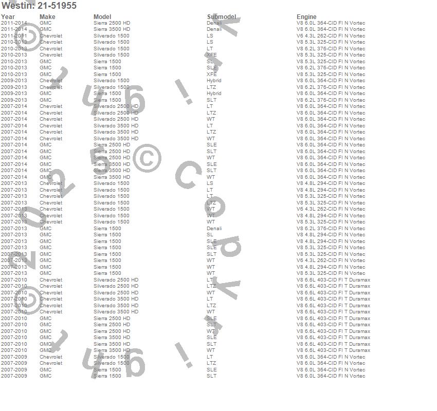 Below is an abbreviated list of applications for the PRO TRAXX 5 Oval Nerf Step Bars.Sierra 1500, Sierra 2500 HD, Sierra 3500 HD, Silverado 1500, Silverado 2500 HD, Silverado 3500 HD, Chevrolet, GMC, 2014, 2013, 2012, 2011, 2010, 2009, 2008, 2007