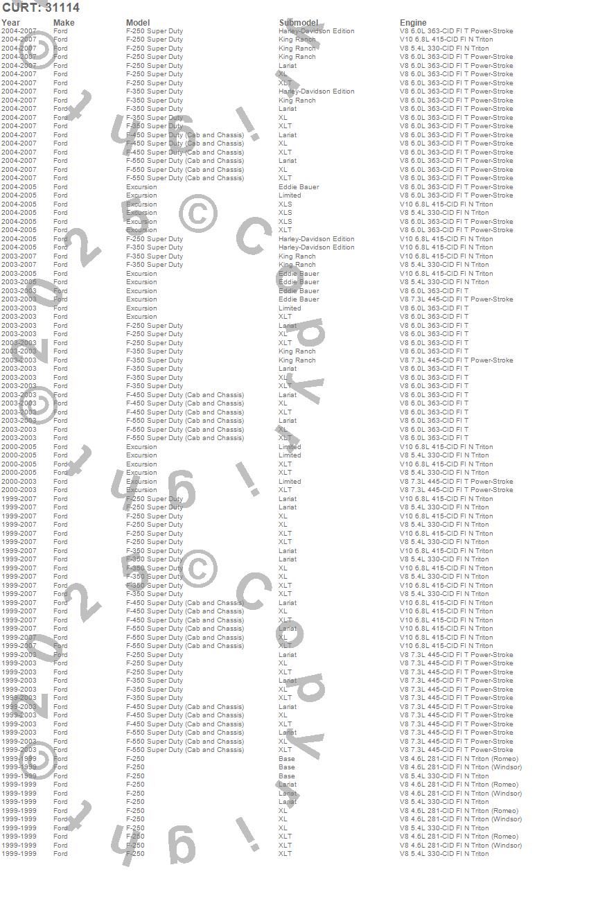Below is an abbreviated list of applications for the 2 in. Receiver Hitch.Excursion, F-250, F-250 Super Duty, F-350 Super Duty, F-450 Super Duty, F-550 Super Duty, Ford, 2007, 2006, 2005, 2004, 2003, 2002, 2001, 2000, 1999