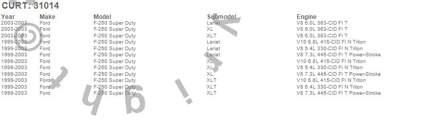 Below is an abbreviated list of applications for the 2 in. Receiver Hitch.F-250 Super Duty, Ford, 2003, 2002, 2001, 2000, 1999