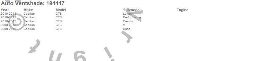Below is an abbreviated list of applications for the Ventvisor In-Channel Deflector 4 pc..CTS, Cadillac, 2013, 2012, 2011, 2010, 2009, 2008