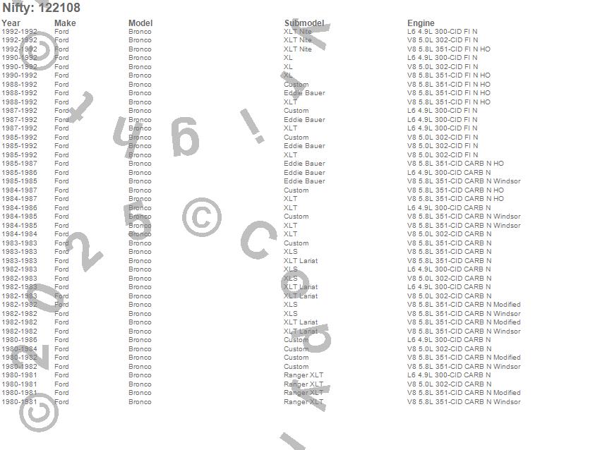 Below is an abbreviated list of applications for the Pro-Line Lower Door Panel Carpet.Bronco, Ford, 1992, 1991, 1990, 1989, 1988, 1987, 1986, 1985, 1984, 1983, 1982, 1981, 1980