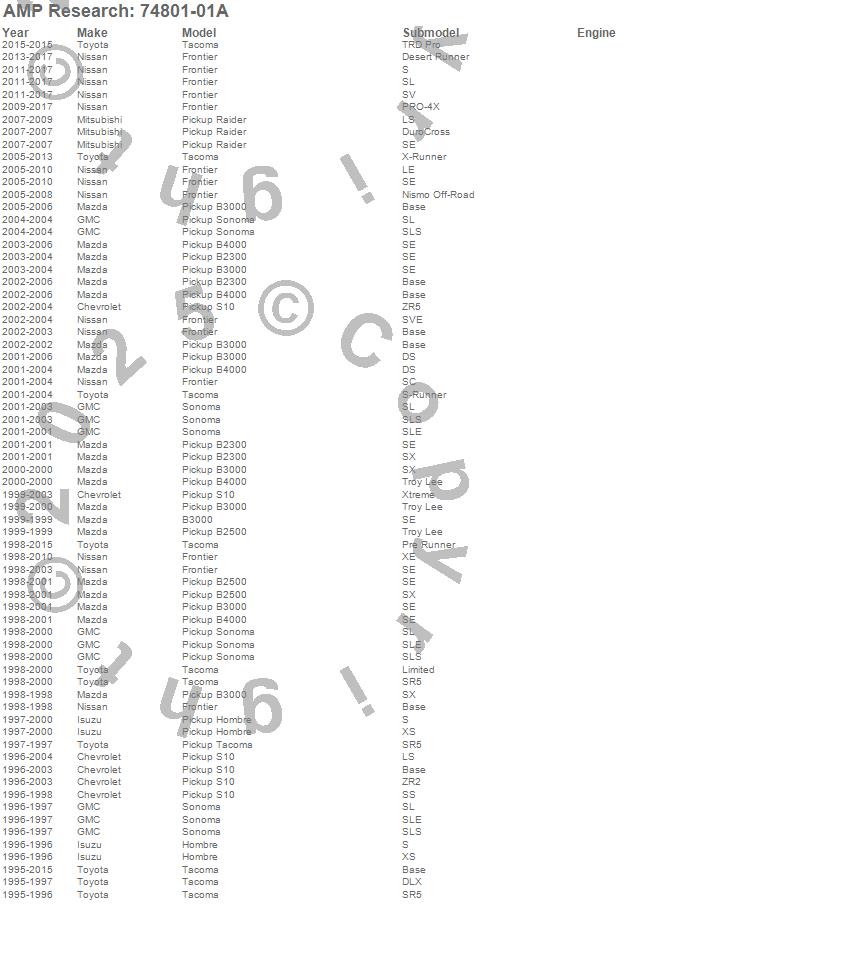 Brand: AMP ResearchPart Number: 74801-01ATruck Bed Tailgate Extension Type: Black - SmallUPC: 815410010699