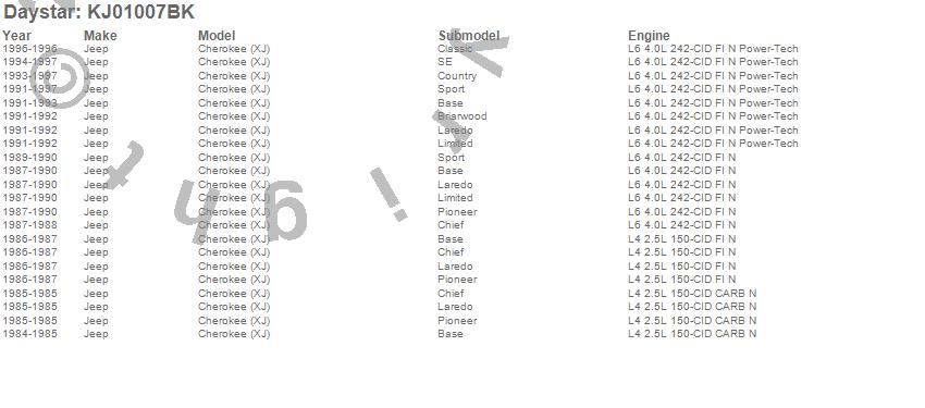 Below is an abbreviated list of applications for the Transmission Mount.Cherokee (XJ), Jeep, 1997, 1996, 1995, 1994, 1993, 1992, 1991, 1990, 1989, 1988, 1987, 1986, 1985, 1984