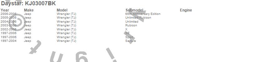 Below is an abbreviated list of applications for the Control Arm Bushing Kit.Wrangler (LJ), Wrangler (TJ), Jeep, 2006, 2005, 2004, 2003, 2002, 2001, 2000, 1999, 1998, 1997