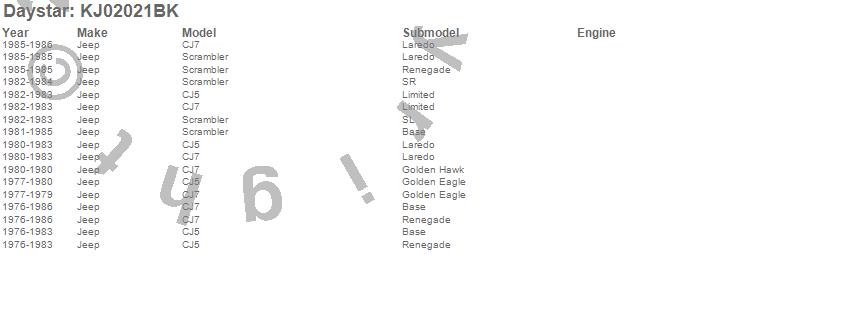 Below is an abbreviated list of applications for the Greasable Bolt And Bushing Kit/Shackles Only.CJ5, CJ7, Scrambler, Jeep, 1986, 1985, 1984, 1983, 1982, 1981, 1980, 1979, 1978, 1977, 1976