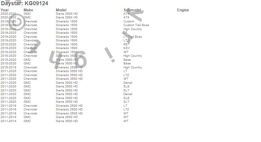 Below is an abbreviated list of applications for the Suspension System Lift Kit.Sierra 2500 HD, Sierra 3500 HD, Silverado 2500 HD, Silverado 3500 HD, Chevrolet, GMC, 2018, 2017, 2016, 2015, 2014, 2013, 2012, 2011