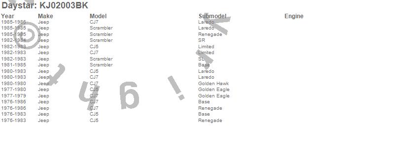 Brand: DaystarPart Number: KJ02003BKLeaf Spring And Shackle Bushing Kit Type: Black - RearUPC: 814423014342