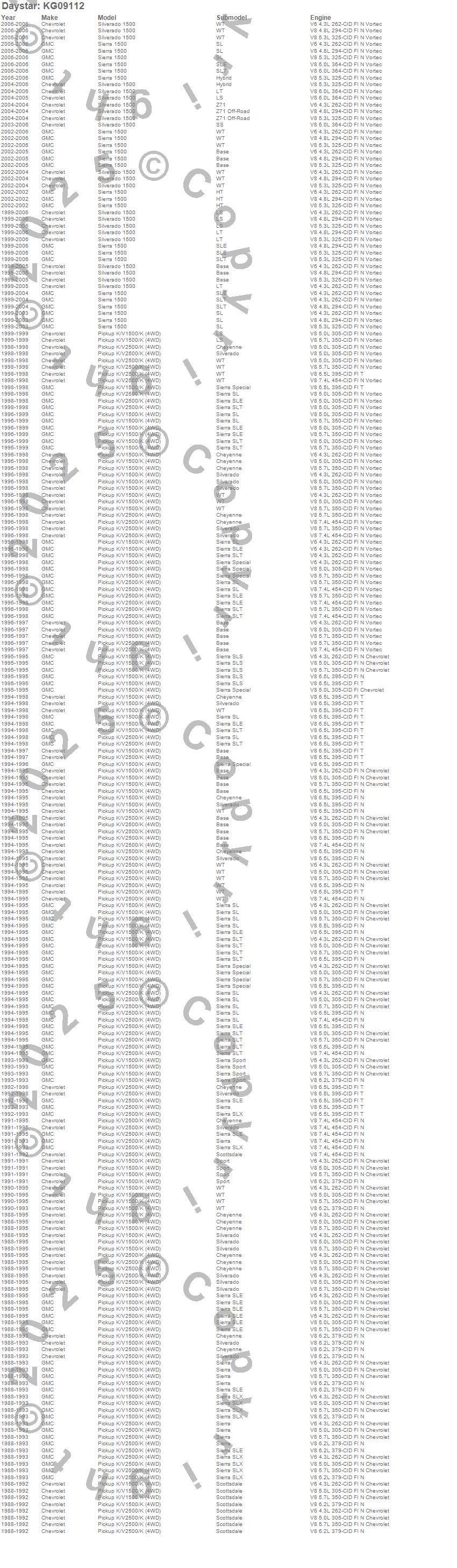 Below is an abbreviated list of applications for the Torsion Bar Key Leveling Kit.K1500, K1500 Pickup, K2500 Pickup, Sierra 1500, Silverado 1500, Chevrolet, GMC, 2006, 2005, 2004, 2003, 2002, 2001, 2000, 1999, 1998, 1997, 1996, 1995, 1994