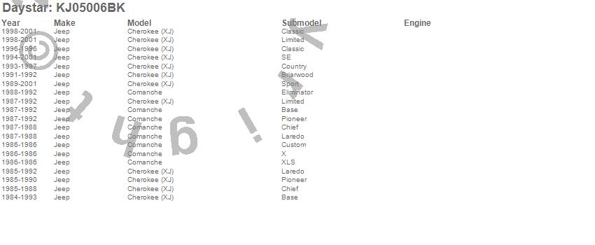 Below is an abbreviated list of applications for the Sway Bar Bushing.Cherokee (XJ), Comanche, Jeep, 2001, 2000, 1999, 1998, 1997, 1996, 1995, 1994, 1993, 1992, 1991, 1990, 1989, 1988, 1987, 1986, 1985