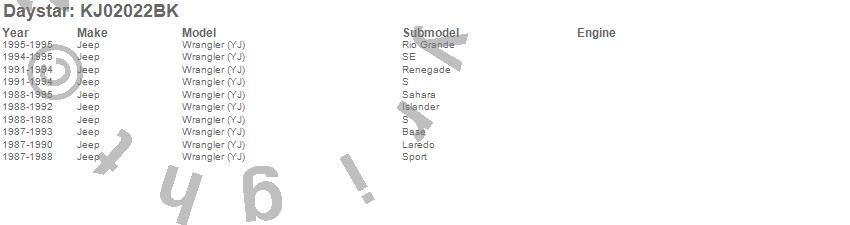 Below is an abbreviated list of applications for the Greasable Bolt And Bushing Kit.Wrangler (YJ), Jeep, 1995, 1994, 1993, 1992, 1991, 1990, 1989, 1988, 1987