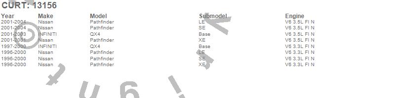 Below is an abbreviated list of applications for the Class III 2 in. Receiver Hitch.Pathfinder, QX4, INFINITI, Nissan, 2004, 2003, 2002, 2001, 2000, 1999, 1998, 1997, 1996