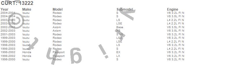 Below is an abbreviated list of applications for the Class III 2 in. Receiver Hitch.Axiom, Passport, Rodeo, Honda, Isuzu, 2004, 2003, 2002, 2001, 2000, 1999, 1998
