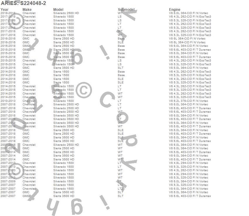 Below is an abbreviated list of applications for the The Standard 4 in. Oval Nerf Bar.Sierra 1500, Sierra 2500 HD, Sierra 3500 HD, Silverado 1500, Silverado 2500 HD, Silverado 3500 HD, Chevrolet, GMC, 2018, 2017, 2016, 2015, 2014, 2013, 2012, 2011, 2010, 2009, 2008, 2007