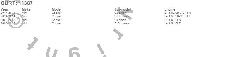 Below is an abbreviated list of applications for the Class I 1.25 in. Receiver Hitch.Cooper, Mini, 2014, 2013, 2012, 2011, 2010, 2009, 2008