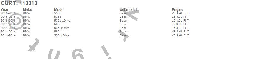 Below is an abbreviated list of applications for the Class I 1.25 in. Receiver Hitch.535d, 535d xDrive, 535i, 535i xDrive, 550i, 550i xDrive, BMW, 2016, 2015, 2014, 2013, 2012, 2011