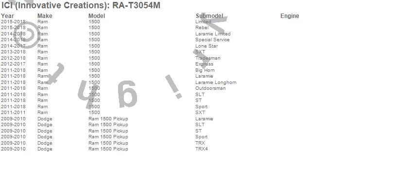 Brand: ICI (Innovative Creations)Part Number: RA-T3054MRocker Panel Guard Type: 5 3/4 in. Width - Tapered - 12 pc.UPC: 845426021686