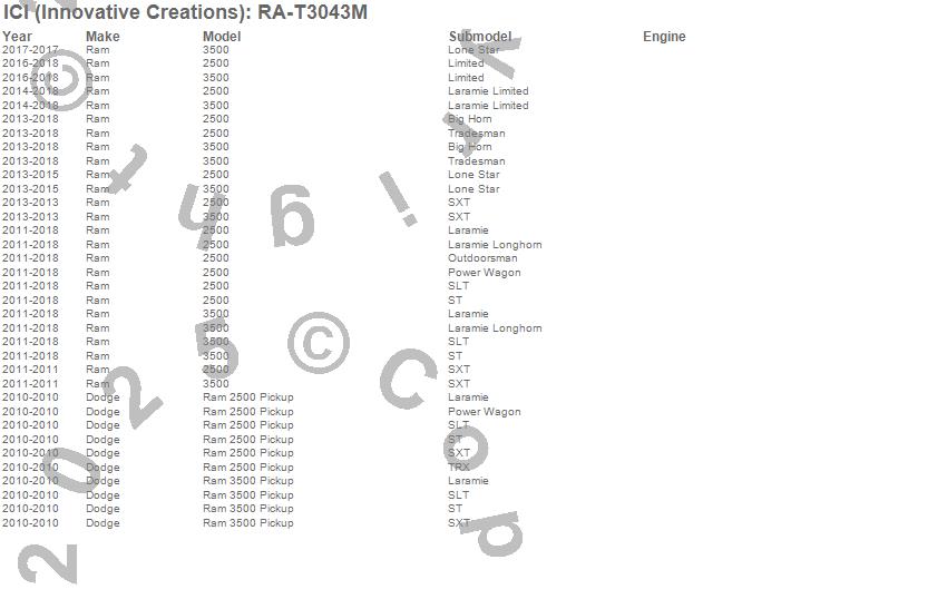 Below is an abbreviated list of applications for the Rocker Armor Kits.2500, 3500, Ram 2500, Ram 3500, Dodge, Ram, 2013, 2012, 2011, 2010