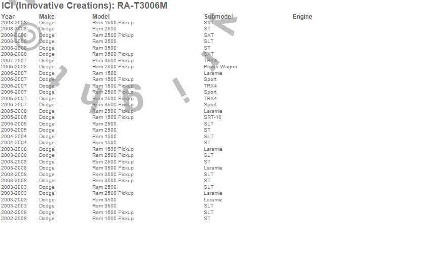 Below is an abbreviated list of applications for the Rocker Armor Kits.Ram 1500, Ram 2500, Ram 3500, Dodge, 2008, 2007, 2006, 2005, 2004, 2003, 2002