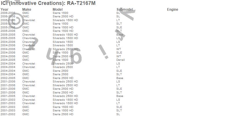 Below is an abbreviated list of applications for the Rocker Armor Kits.Sierra 1500, Sierra 1500 HD, Sierra 2500, Sierra 2500 HD, Silverado 1500, Silverado 1500 HD, Silverado 2500, Silverado 2500 HD, Chevrolet, GMC, 2006, 2005, 2004, 2003, 2002, 2001