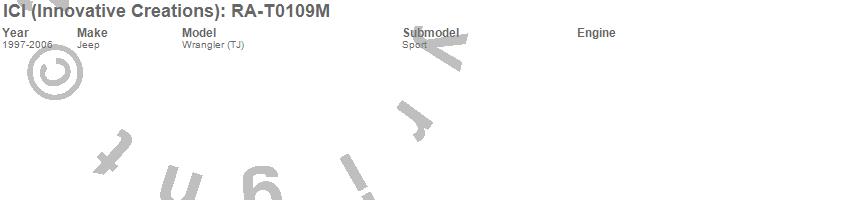 Brand: ICI (Innovative Creations)Part Number: RA-T0109MRocker Panel Guard Type: 6 in. Width - 2 pc.UPC: 845426021969