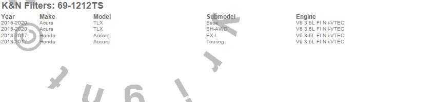 Below is an abbreviated list of applications for the Typhoon Complete Cold Air Induction Kit.Accord, TLX, Acura, Honda, 2017, 2016, 2015, 2014, 2013