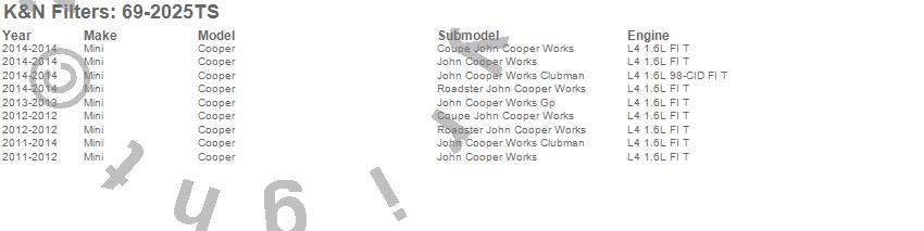 Below is an abbreviated list of applications for the Typhoon Complete Cold Air Induction Kit.Cooper, Mini, 2014, 2013, 2012, 2011