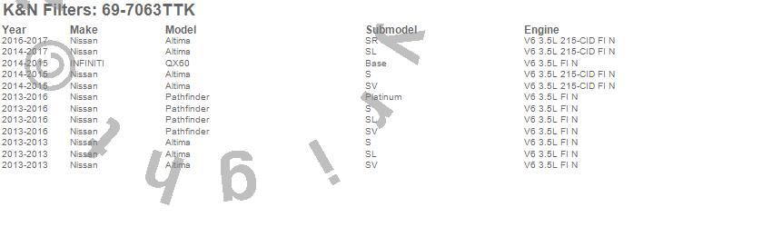 Below is an abbreviated list of applications for the Typhoon Complete Cold Air Induction Kit.Altima, Pathfinder, QX60, Infiniti, Nissan, 2017, 2016, 2015, 2014, 2013