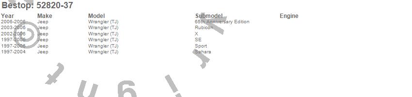Below is an abbreviated list of applications for the Replace-A-Top.Wrangler (TJ), Jeep, 2006, 2005, 2004, 2003, 2002, 2001, 2000, 1999, 1998, 1997