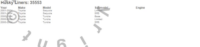 Below is an abbreviated list of applications for the Classic Style Floor Liner.Sequoia, Tundra, Toyota, 2004, 2003, 2002, 2001, 2000