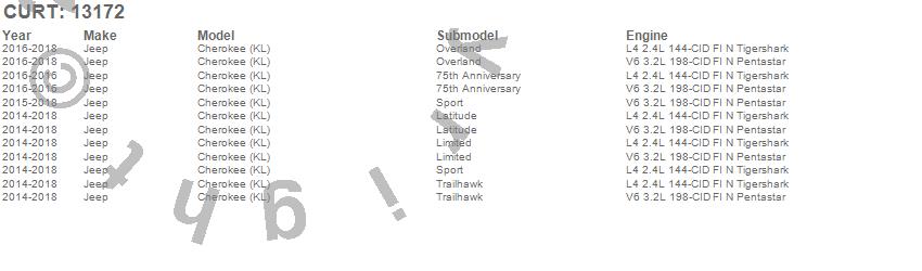 Below is an abbreviated list of applications for the Class III 2 in. Receiver Hitch.Cherokee (KL), Jeep, 2018, 2017, 2016, 2015, 2014