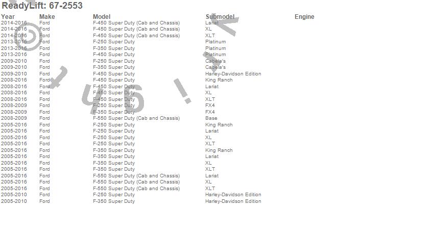 Below is an abbreviated list of applications for the Radius Arm Bracket Kit.F-250 Super Duty, F-350 Super Duty, F-450 Super Duty, F-550 Super Duty, Ford, 2016, 2015, 2014, 2013, 2012, 2011, 2010, 2009, 2008, 2007, 2006, 2005