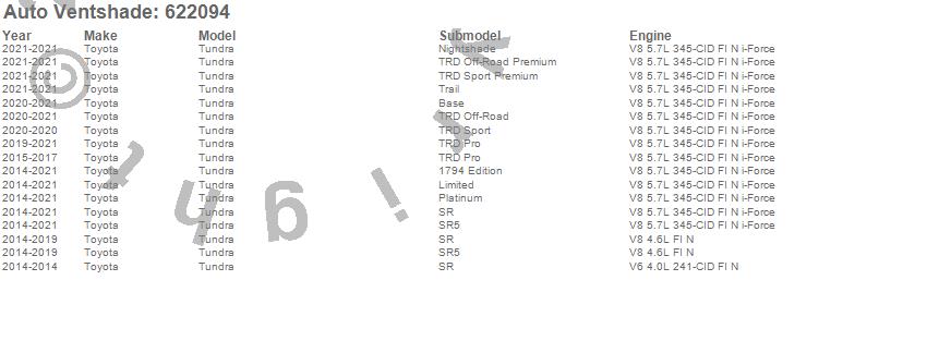 Below is an abbreviated list of applications for the Aeroskin Chrome Hood Protector.Tundra, Toyota, 2021, 2020, 2019, 2018, 2017, 2016, 2015, 2014