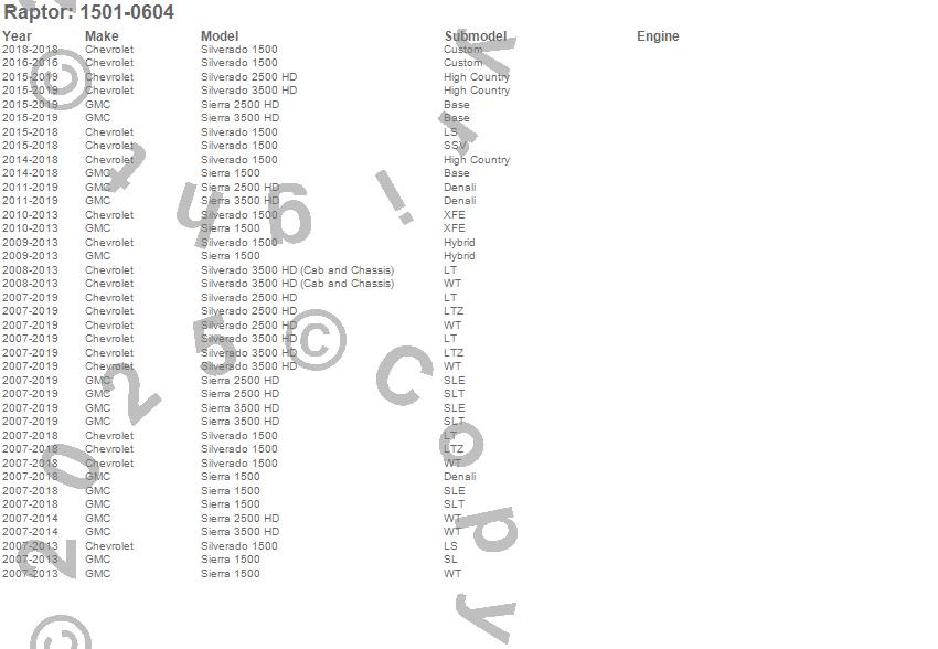 Brand: RaptorPart Number: 1501-0604Nerf/Step Bar Type: Stainless Steel - 4 in. - Rocker Panel MountUPC: 816164017101