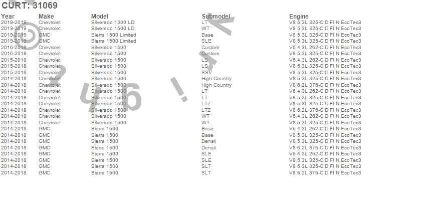 Below is an abbreviated list of applications for the 2 in. Receiver Hitch.Sierra 1500, Sierra 1500 Limited, Silverado 1500, Silverado 1500 LD, Chevrolet, GMC, 2019, 2018, 2017, 2016, 2015, 2014