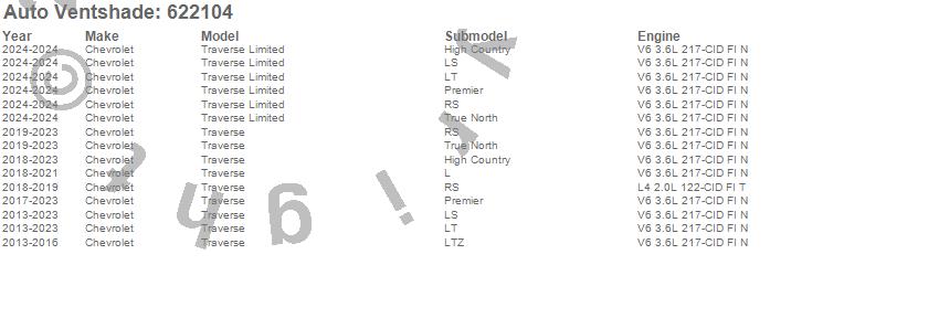 Below is an abbreviated list of applications for the Aeroskin Chrome Hood Protector.Traverse, Traverse Limited, Chevrolet, 2024, 2023, 2022, 2021, 2020, 2019, 2018, 2017, 2016, 2015, 2014, 2013