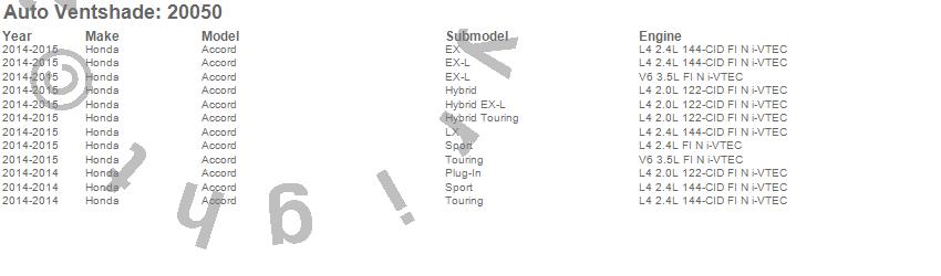 Below is an abbreviated list of applications for the Carflector Stone/Bug Deflector.Accord, Honda, 2015, 2014