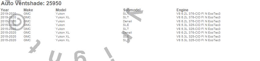 Below is an abbreviated list of applications for the Bugflector II Stone/Bug Deflector.Yukon, Yukon XL, GMC, 2020, 2019, 2018, 2017, 2016, 2015