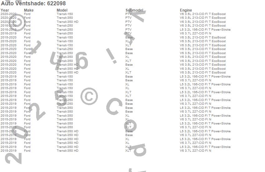 Below is an abbreviated list of applications for the Aeroskin Chrome Hood Protector.Transit-150, Transit-250, Transit-350, Transit-350 HD, Ford, 2020, 2019, 2018, 2017, 2016, 2015